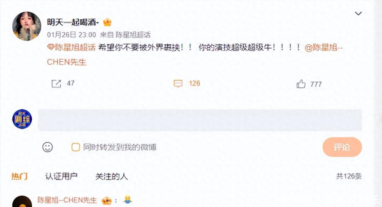 • 演员陈星旭回复粉丝的鼓励,网友:双向奔赴的爱太好磕